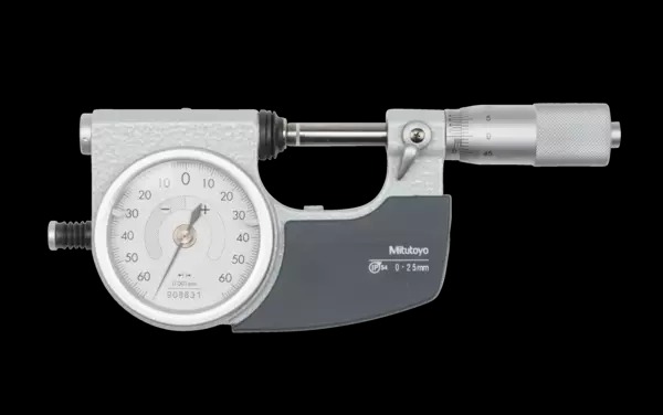 Retractable anvil with indicator is popular for three-wire measurements of pitch diameter of precision screws, and parallelism measurements.