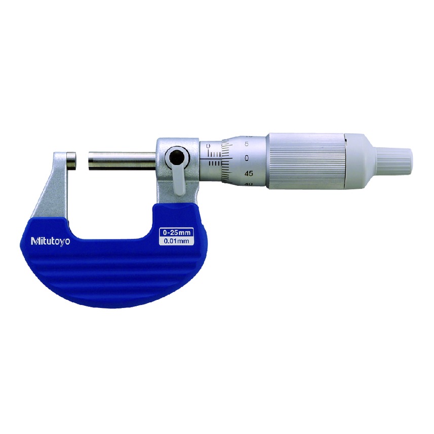 The Mitutoyo ratchet thimble outside micrometer provides greater accuracy even with one-handed operation. The ratchet thimble on Mitutoyo’s 102-701 mechanical outside micrometer delivers a smoother, constant measuring force on the spindle to ensure accurate, repeatable measurements. The combination of the ratchet thimble and speeder enables a rapid spindle feed when measuring a wide range of different dimensions or easier, one-handed measurements.