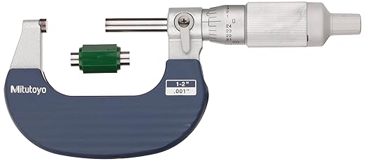The Mitutoyo 102 series outside micrometer has a vernier scale in inch units for taking precise outside diameter (OD) measurements, and a ratchet thimble mechanism helps provide uniform pressure for precise, repeatable measurement. The micrometer’s frame is tapered for measuring narrow slots and tight spaces, has a baked enamel finish for protection and durability and a friction grip. The vernier scale on the thimble and sleeve is graduated to 0.001”, with a satin chrome rust- and glare-resistant finish. The spindle and anvil have flat measuring faces and are carbide-tipped for wear resistance. A spindle lock helps provide secure locking of the measurement position. The micrometer comes with a plastic case for storage.