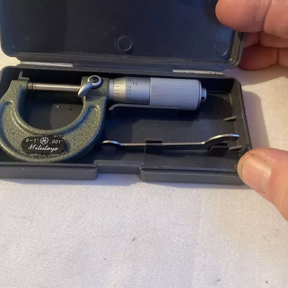 MITUTOYO 103-127 0 – 1″ Range, .001″ Graduation Flat End Spindle Outside Micrometer