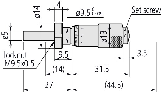 Mitutoyo 148-822 Small standard Micrometer Head 13mm 148-822, 9.5mm Plain Stem with locknut Range 0-13mm Spherical anvil reverse reading