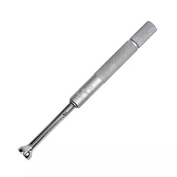 The Mitutoyo small hole gage features a hardened steel, precision machined split half ball on each gage for high-accuracy, two-point contact measurements throughout the entire column of small bores. The extra-long half ball small hole gage set allows for gaging both deep and shallow holes and slots. The split ball is constructed of hardened steel for accurate, repeatable two-point contact measurements. These hole gages are used with outside micrometers for measuring the inside diameter of bores.