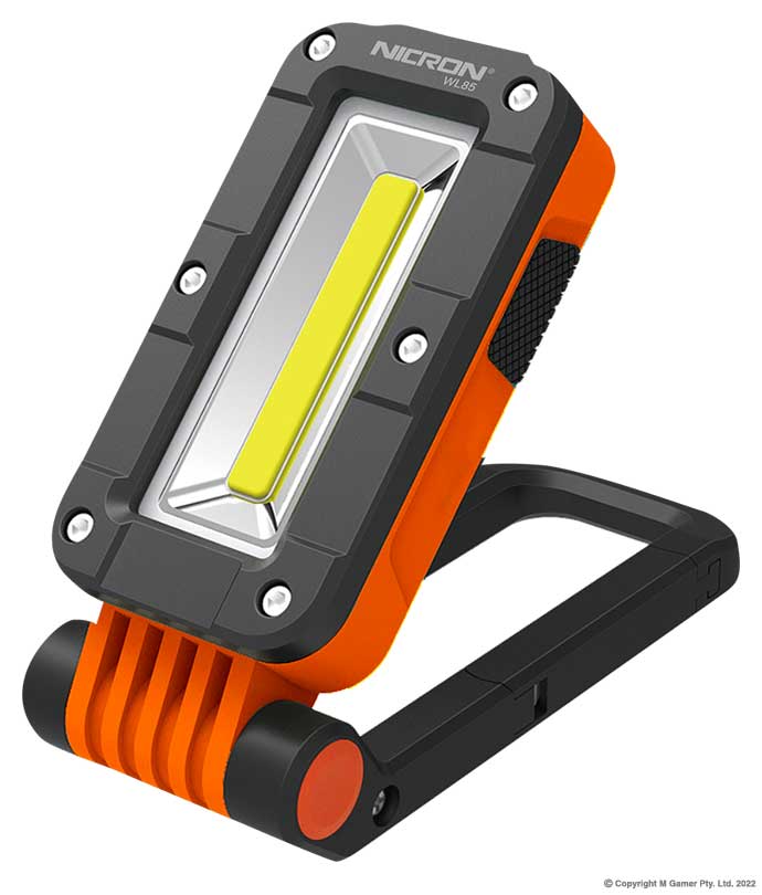 • Spot Light • Flood Light • Body incorporates foldout stand • Integrated Battery State Indicator • Strong magnetic base • USB-C Charge Port Brightness: 450 / 280 Lm Range: 44m Spot Light: Low (60Lm/35Hr) Med (280Lm/7Hr) Flood Light: Low (12Lm/102Hr) Med (160Lm/10Hr) High (450Lm/6Hr) Ingress Rating: IPX5 Size: 123 x 55 x 32 Weight: 180g Battery: Li-ion battery (2600mAh) Package Contents: Flashlight with integrated Li-ion Battery, USB-C Cable.