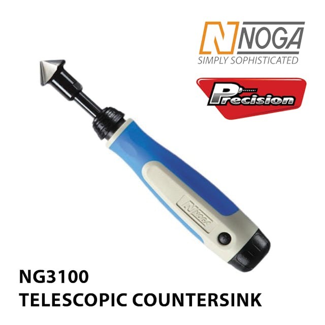 The NG3100 Countersink Tool comes with the ergonomic NG3000 NogaGrip Handle, Telescopic C Holder CH3000, and 20mm Countersink C20