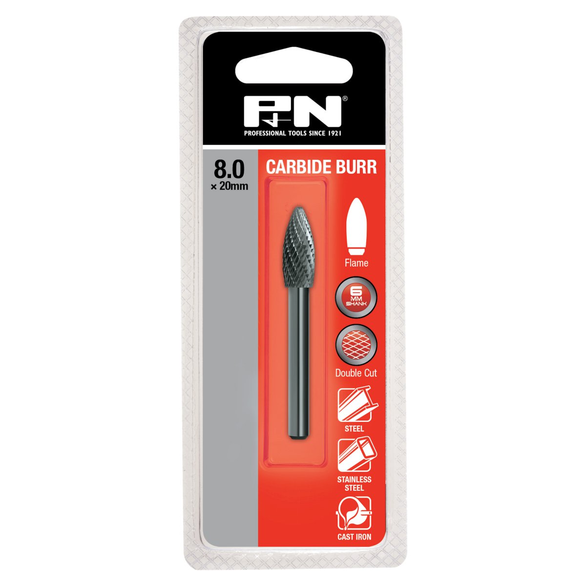 P&N – BURR CARB FLAME DBL-CUT 6MM-SHK 5/16IN P&N