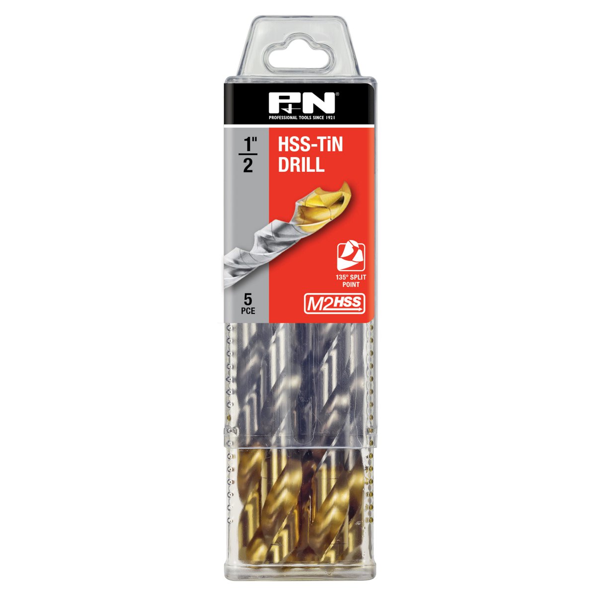 P&N – DRILL JOBBER HSS-TiN-TIP TRADEPACK 1/2IN 5PK P&N
