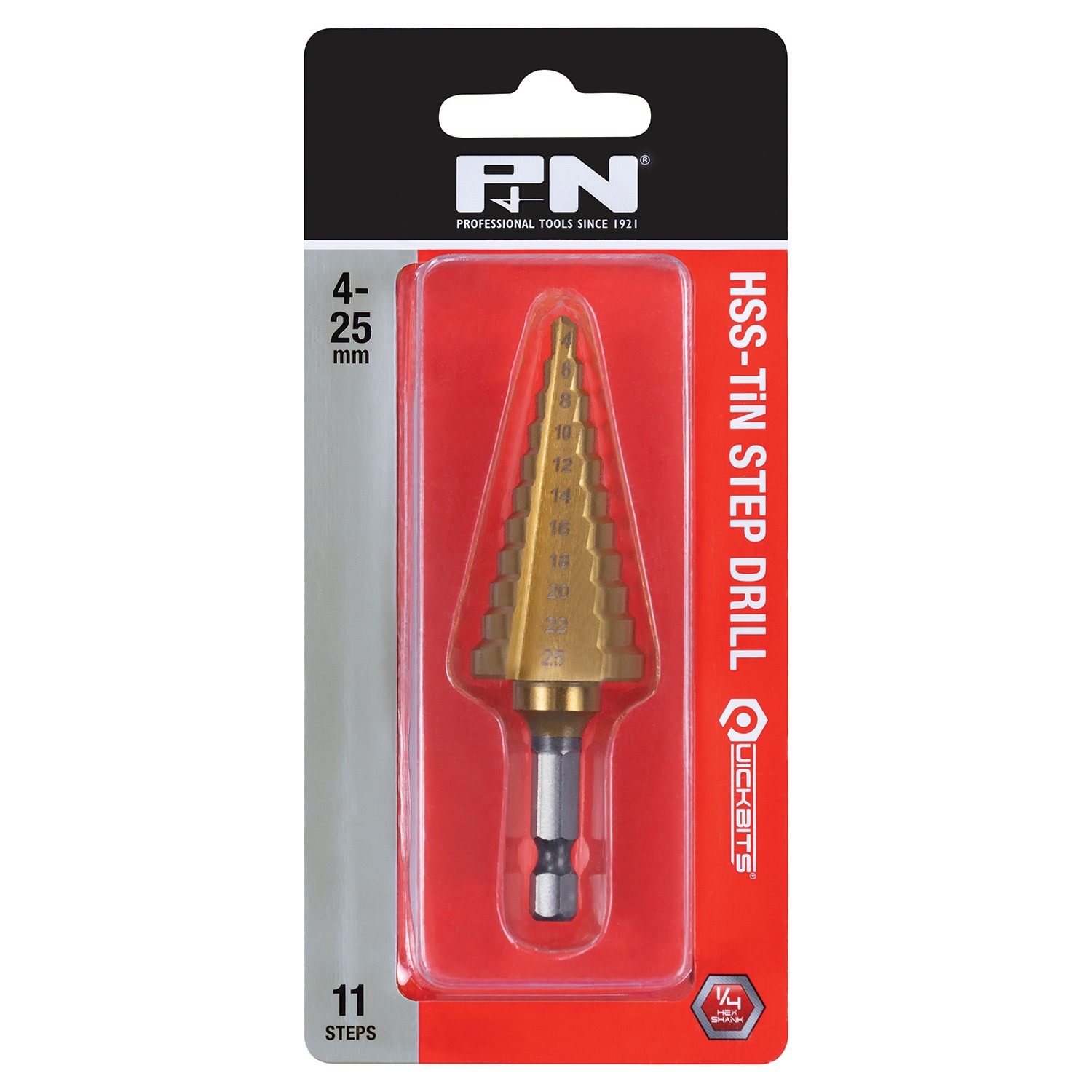 DRILL STEP 4-25MM 11-STEP HSS TiN QUICKBITS P&N
