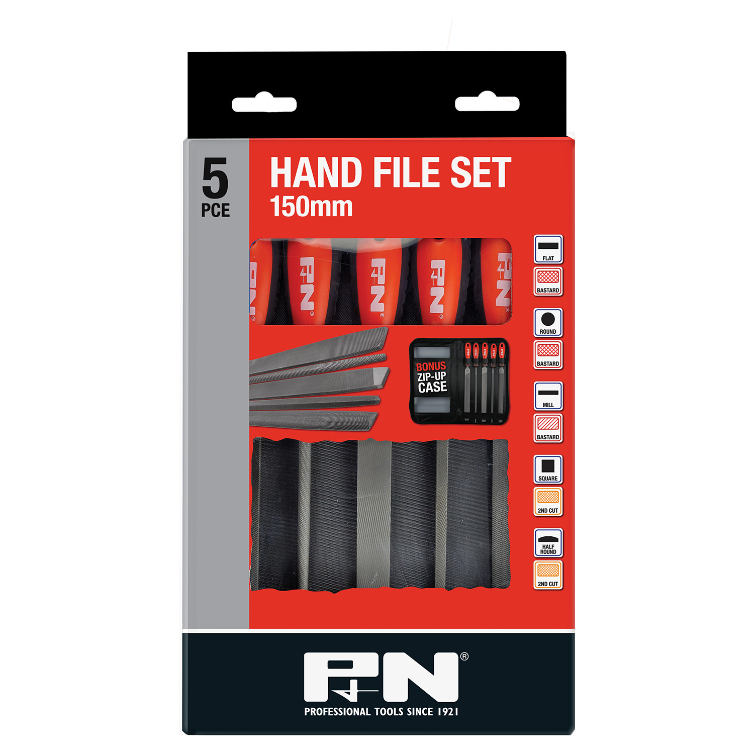 Home » Shop » HAND TOOLS » Files - Engineering » File Sets - Engineers » FILE SET 5PC 150mm(6″) Flat,Rnd,Millsaw Bast Hlf Rnd&Sq 2Cut