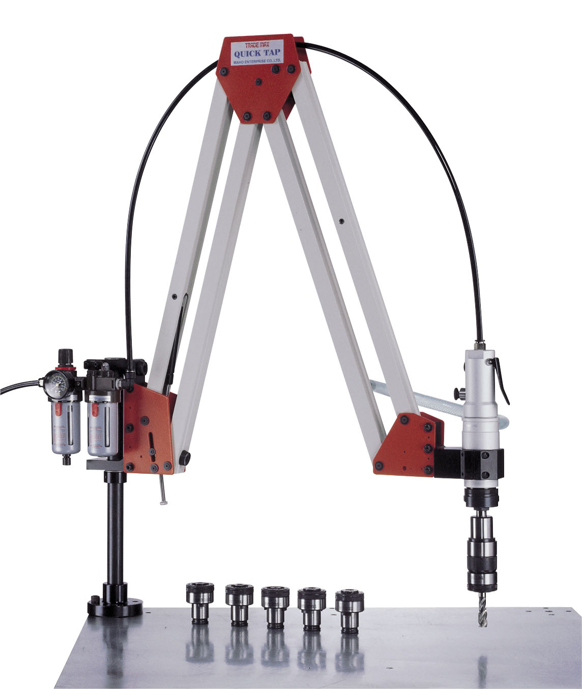 Quck change tapping collets are provided , allows easy change of size taps quickly.