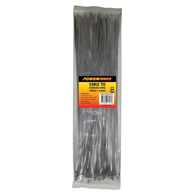 Home » Shop » HAND TOOLS » POWERFORCE – CABLE TIE, 316 STAINLESS STEEL 520mm x 4.6mm [100] PACK