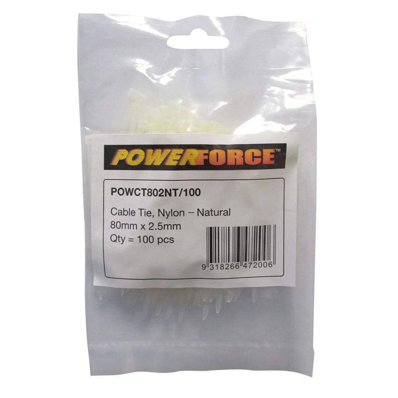 POWERFORCE – CABLE TIE, NYLON – NATURAL 80mm x 2.5mm [100] PACK