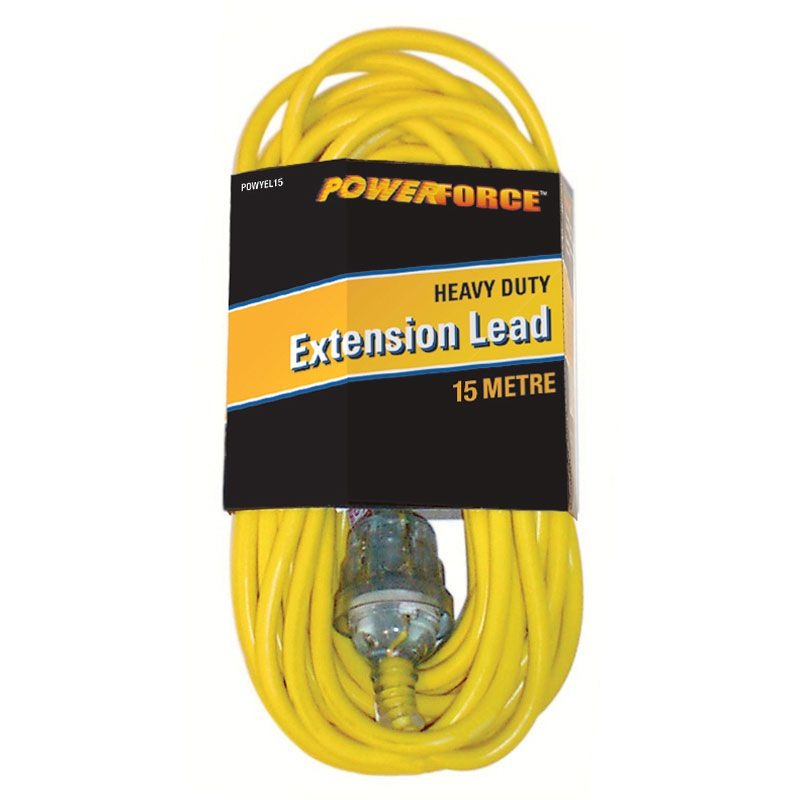 POWERFORCE – EXTENSION LEAD, 15m 10A HEAVY DUTY PVC, YELLOW