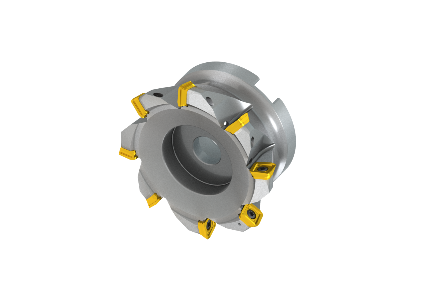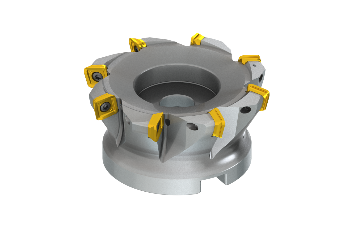 Highly versatile 12˚ high feed mill utilising single sided SO.. 12 style inserts with APMX of 1,9 mm Cutting diameter 82.3 mm with 12° approach angle and 32 mm connection bore according to DIN 8030-C, 50 mm functional length, through coolant and differential pitch for face milling, copy milling, ramping, helical milling, plunge milling and progressive plunge milling