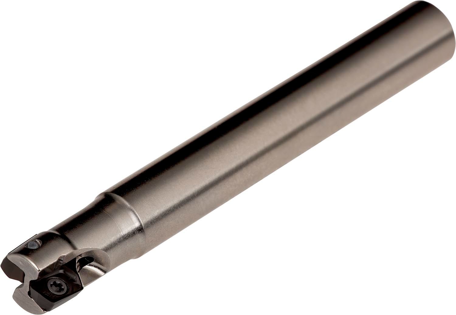 Shoulder mill with positve/negative geometry which utilises 2 of ADMX 0702.. or ADEX 0702.. single-sided inserts, cutting diameter 10mm with 90° approach angle and 10mm parallel shank according to DIN 1835A, 18mm functional and 80mm overall length, through coolant for shallow shoulder milling, shallow slot milling, ramping, helical milling, plunge milling and progressive plunge milling with a maximum depth of cut of 5.0mm