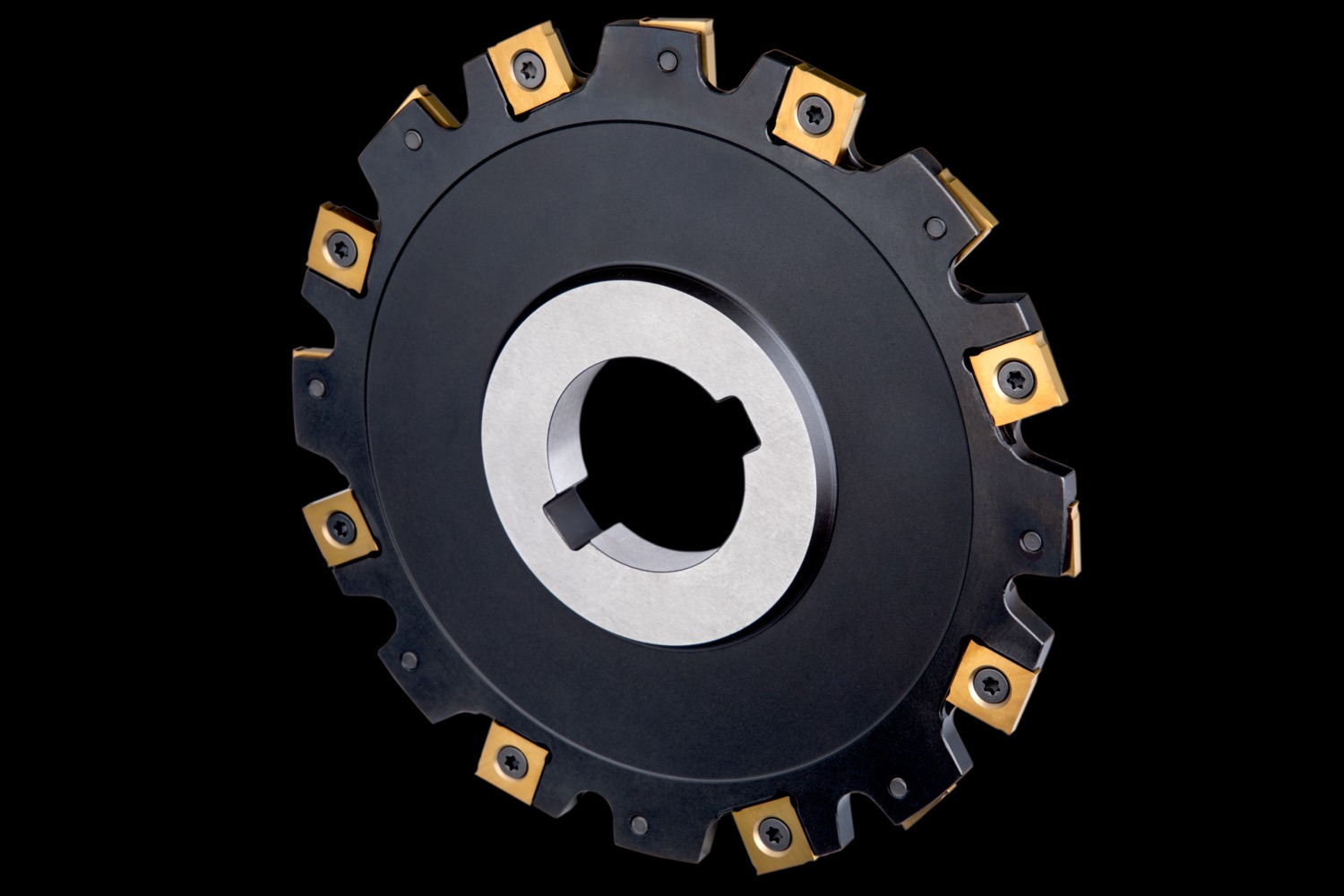 Disc mill with positve/negative geometry which utilises 16 of SNHQ 1203.. double-sided inserts, cutting diameter 160mm with 90° approach angle and 40mm connection bore according to DIN 8030, for deep slot milling with a width of cut of 6mm