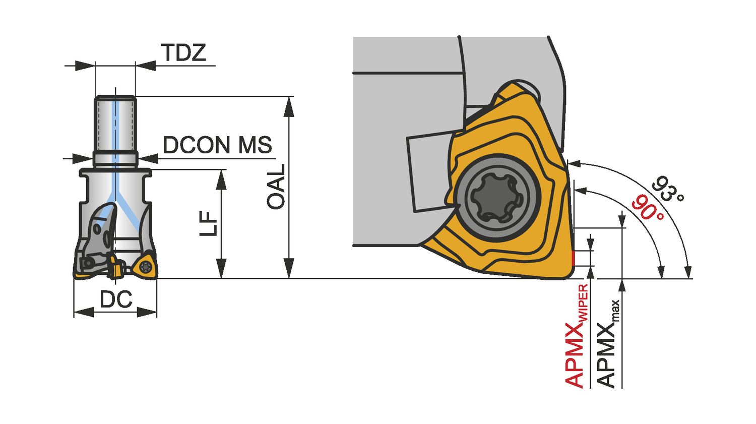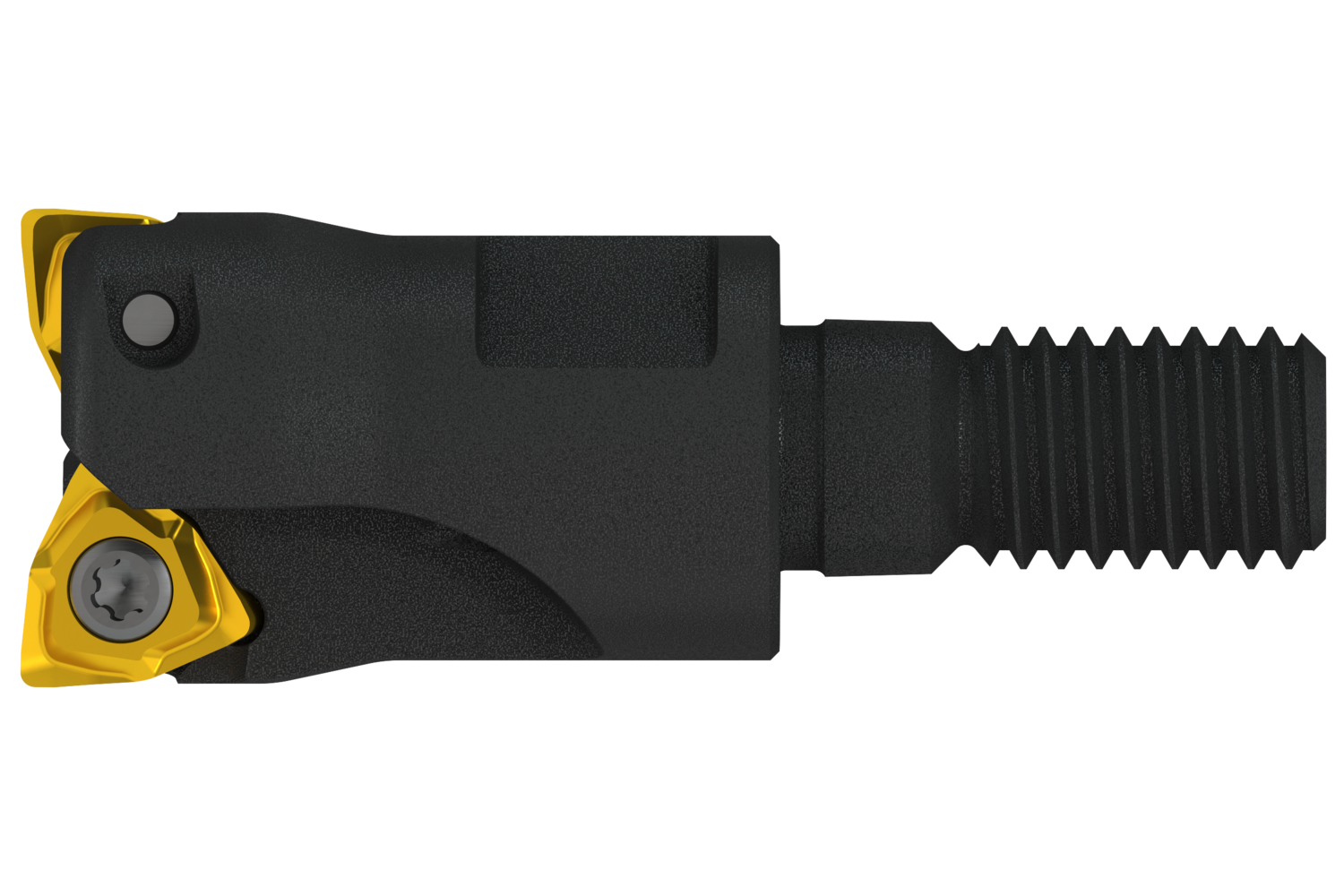Copy face mill with double negative geometry which utilises 2 of WNHX0403.. double-sided inserts, cutting diameter 16mm with 90° approach angle and M08 threaded shank for standard modular tool-holders, 25mm functional and, through coolant for face milling, shallow shoulder milling, deep shoulder milling, plunge milling, copy milling and ramping with a maximum depth of cut of 0,5 (2,0)mm