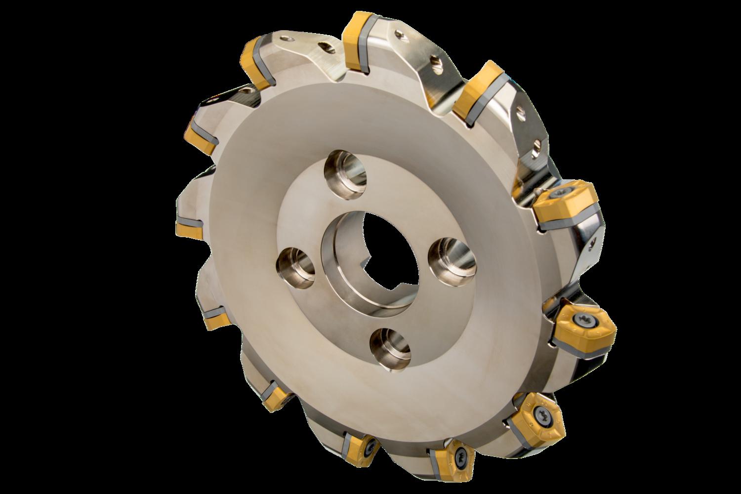 Face mill with double negative geometry which utilises 14 of PNMU 1308DN.. or PNMQ 1308DN.. double-sided inserts, cutting diameter 315 to maximum 330.8mm with 57° approach angle and 60mm connection bore according to DIN 8030-C, 80mm protrusion length for face milling with a maximum depth of cut of 10.0mm