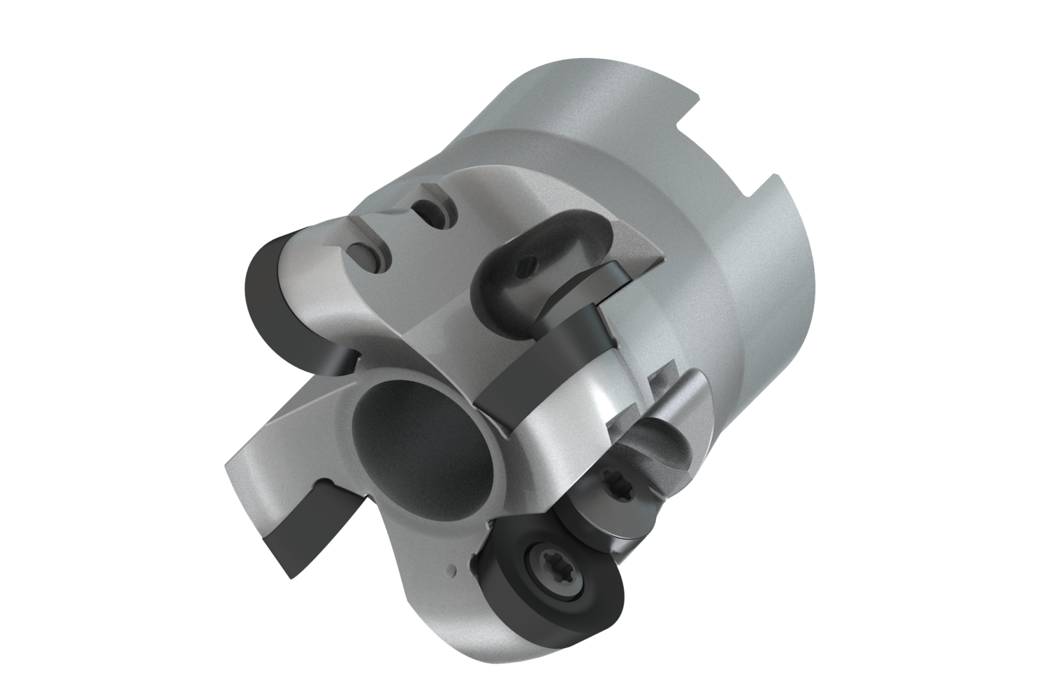 Copy face mill with positve/negative geometry which utilises 4 of RD.. 1604MOT or RDHT 1604MO-FA single-sided inserts, cutting diameter to maximum 52mm with 22mm connection bore according to DIN 8030-A, 50mm functional and, through coolant for face milling, copy milling, ramping, progressive plunge milling and helical milling with a maximum depth of cut of 4mm