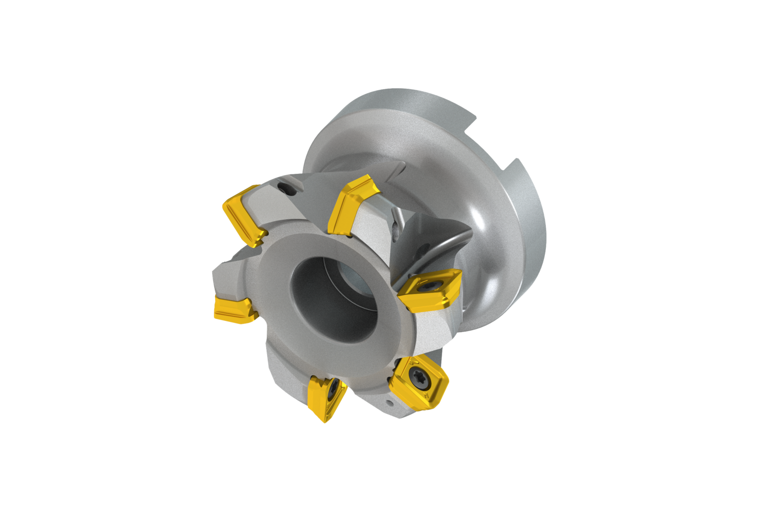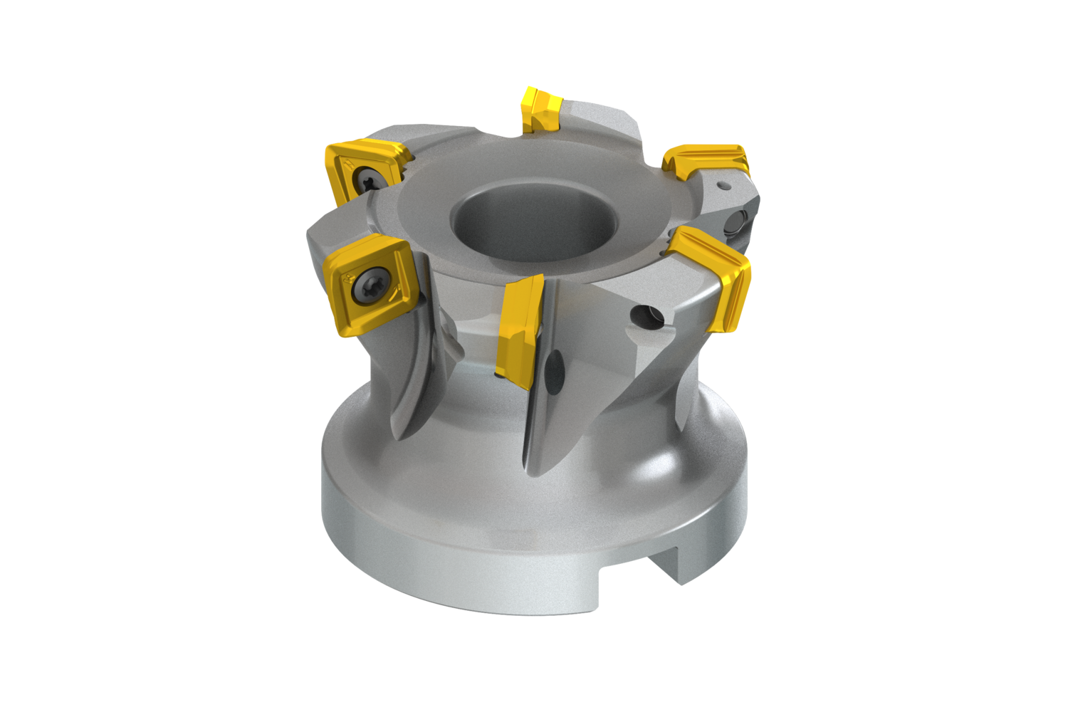 Highly versatile 12˚ high feed mill utilising single sided SO.. 12 style inserts with APMX of 1,9 mm Cutting diameter 48.3 mm with 12° approach angle and 27 mm connection bore according to DIN 8030-C, 50 mm functional length, through coolant and differential pitch for face milling, copy milling, ramping, helical milling, plunge milling and progressive plunge milling