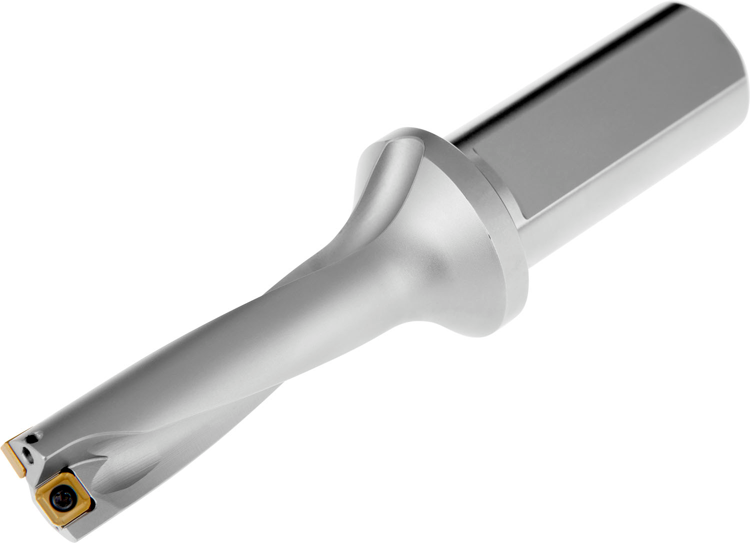 Indexable insert drill which utilises an XPET 0502.. insert in the central pocket and a SCET 0502.. insert in the peripheral pocket, cutting diameter 17mm in combination with EP253253, suited for a radial adjustment of -0.10 to +0.50mm, with a 25mm cylindrical shank with flat according to ISO 9766 and through coolant for maximum drilling depths up to 3 x D