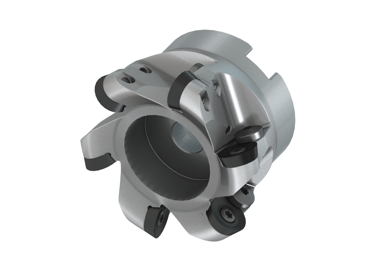 Copy face mill with positve/negative geometry which utilises 6 of RD.. 1604MOT or RDHT 1604MO-FA single-sided inserts, cutting diameter to maximum 80mm with 27mm connection bore according to DIN 8030-A, 52mm functional and, through coolant for face milling, copy milling, ramping, progressive plunge milling and helical milling with a maximum depth of cut of 4mm