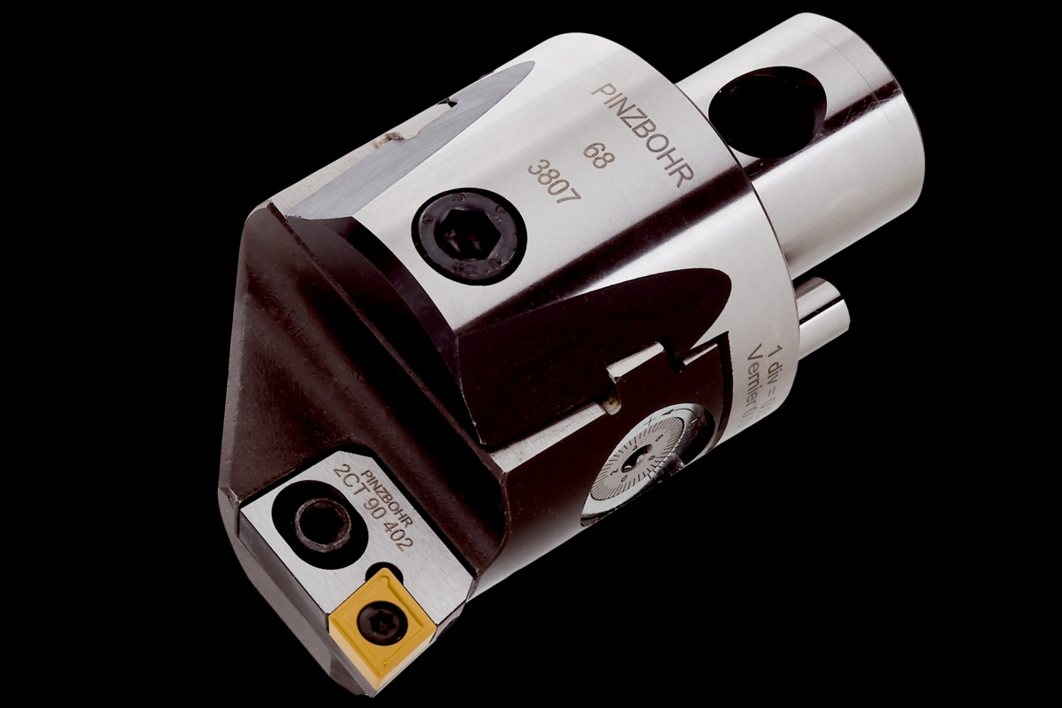 Cartridge type boring head size 100 with 90° approach angle and 2 micron adjusting accuracy for finishing within a diamerter range of 125 to 160mm, complete with a 3CT 90 402 cartridge to hold CC.. 1204.. insert for longitudinal boring with and without shoulder