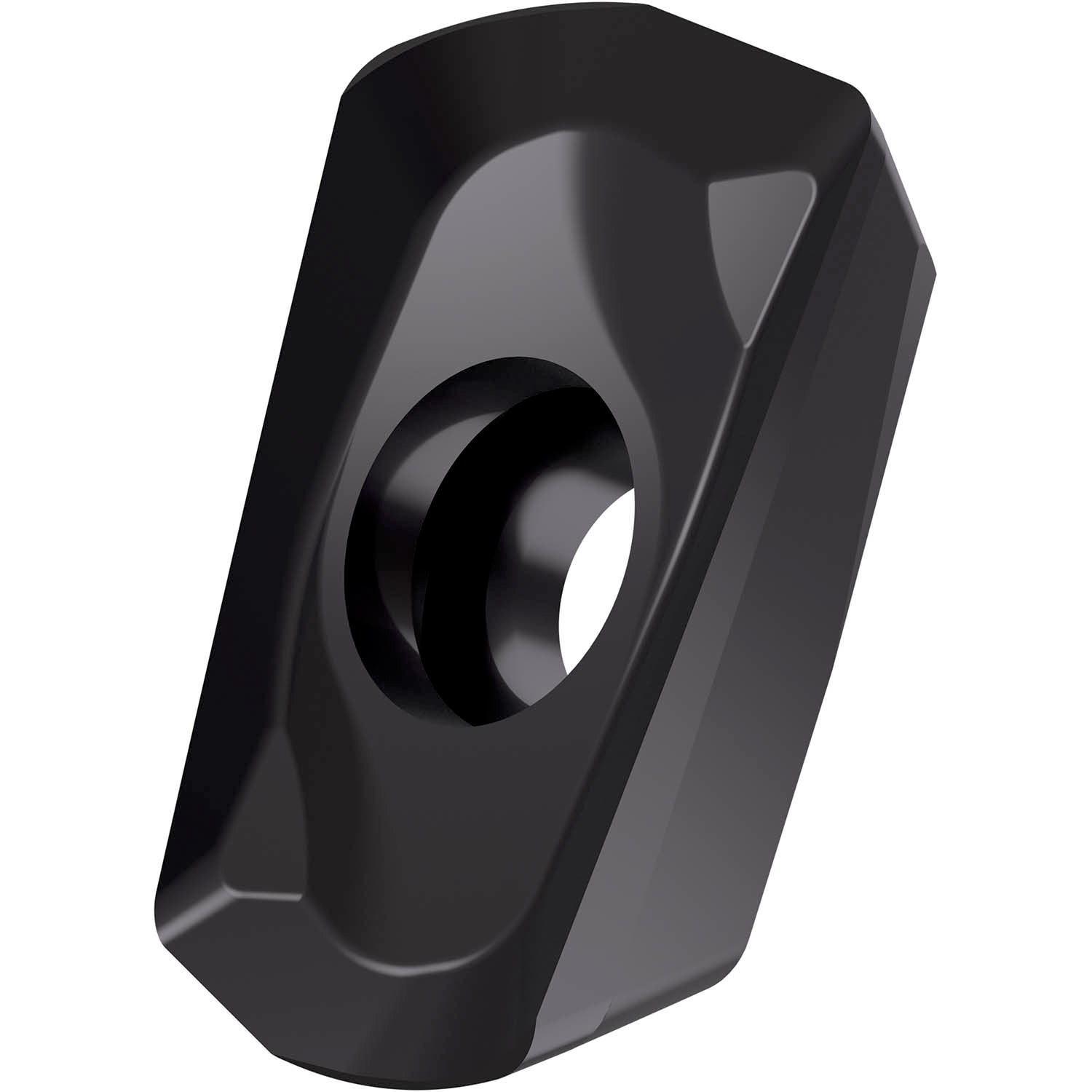 Single-sided milling insert ADEX 11T3, 85° parallelogram and high-feed design for a maximum depth of cut of 0.6mm, with 0.8mm corner radius, an indexing accuracy according to ISO-tolerance class-E and HF geometry with rounded cutting edges and facet, 8215 PVD coated fine grained WC-Co carbide within ISO-grade range P10 -P20 for machining of steel with shoulder mills SAD11E