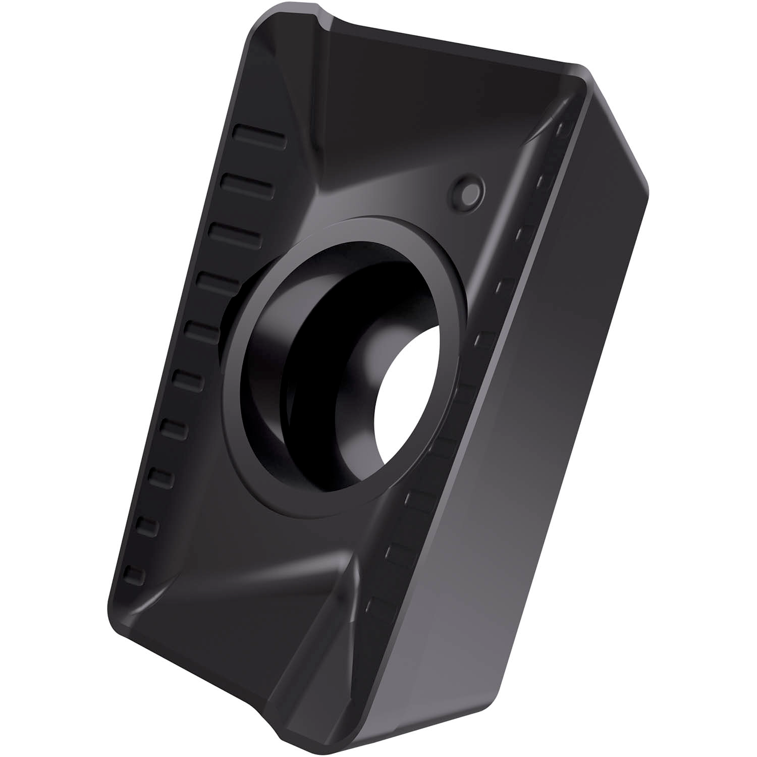 Single-sided milling insert APKT 1003 with chip-breakers, 85° parallelogram for a maximum depth of cut of 9.0mm, with 0.5mm corner radius, an indexing accuracy according to ISO-tolerance class-K and M geometry with rounded cutting edges, 8215 PVD coated fine grained WC-Co carbide within ISO-grade ranges P10 -P20 and K10 -K25 for machining of steel and cast-iron with shoulder mills SAP10D
