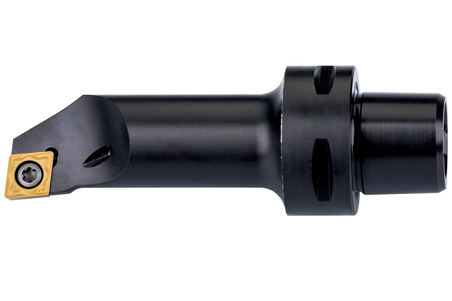 Screw clamp boring bar for holding a 80° rhombus positive insert with an inscribed circle diameter of 9.525mm, 3.97mm thick (ISO designation CC.. 09T3.. ), right hand 95° side and end cutting with off-set shank according to ISO 26623 (Polygon Shank Coupling) size C3, with 11mm funtional width and 65mm protruding length for taper boring and longitudinal boring with and without shoulder