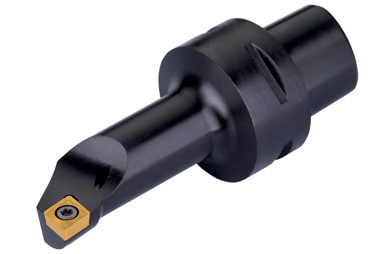 Screw clamp turning tool for holding a 80° rhombus positive insert with an inscribed circle diameter of 9.525mm, 3.97mm thick (ISO designation CC.. 09T3.. ), right hand 95° side and end cutting with off-set shank according to ISO 26623 (Polygon Shank Coupling) size C4, with 27mm funtional width and 50mm protruding length for chamfering, taper turning, face turning with and without shoulder and longitudinal turning with and without shoulder