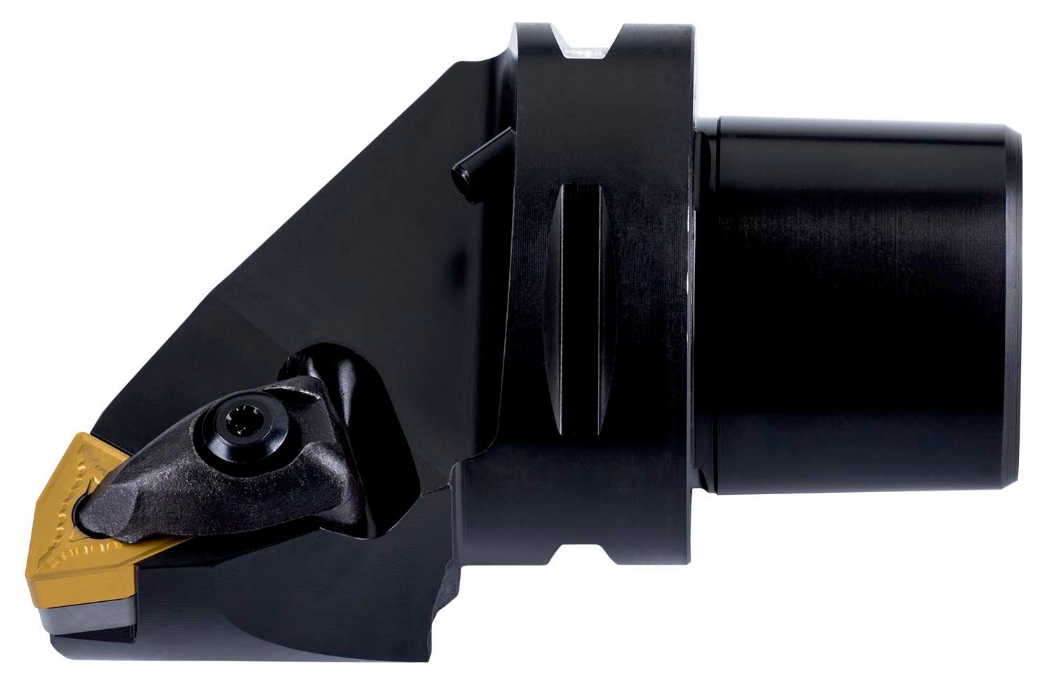 Double clamp turning tool for holding a 80° trigon negative insert with an inscribed circle diameter of 12.7mm, 4.76mm thick (ISO designation WN.. 0804.. ), right hand 95° side and end cutting with off-set shank according to ISO 26623 (Polygon Shank Coupling) size C5, with 35mm funtional width and 60mm protruding length for taper turning, face turning with and without shoulder and longitudinal turning with and without shoulder