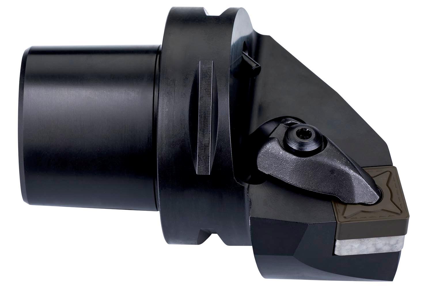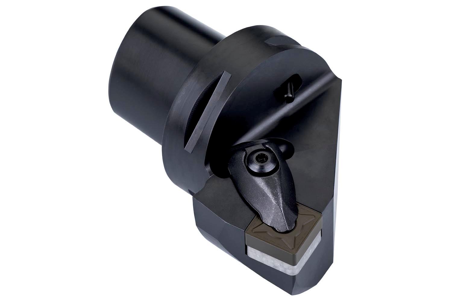 Double clamp turning tool for holding a square negative insert with an inscribed circle diameter of 19.05mm, 6.35mm thick (ISO designation SN.. 1906.. ), left hand 75° side cutting with off-set shank according to ISO 26623 (Polygon Shank Coupling) size C6, with 35mm funtional width and 65mm protruding length for taper turning and longitudinal turning without shoulder