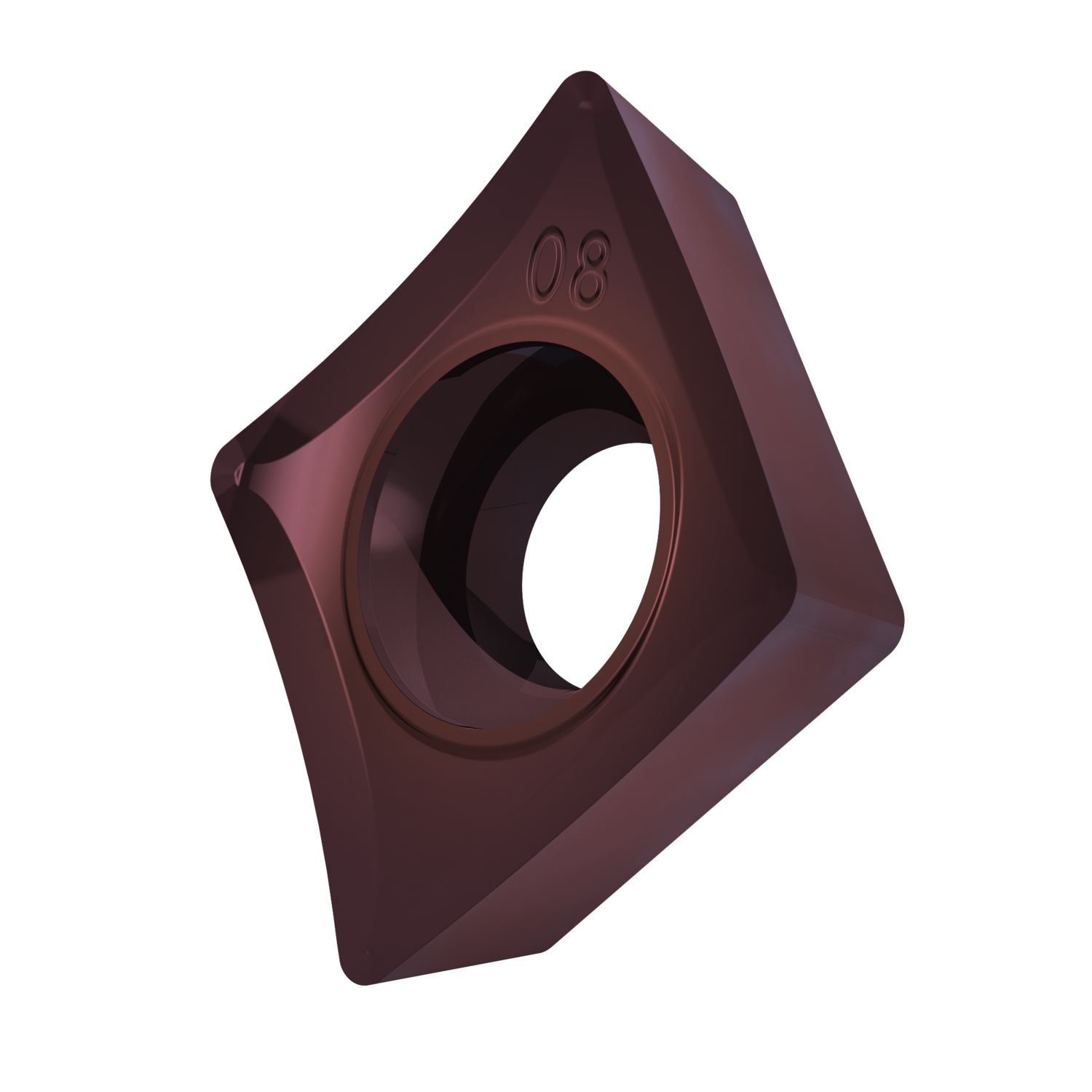 Single-sided positive turning insert, 80° rhomboid with 7° clearance, inscribed circle diameter of 12.7mm, 4.76mm thick, 0.8mm nose radius, indexing accuracy according to ISO-tolerance class-G, chip-breaker SF3 with rounded cutting edges, in grade T8415