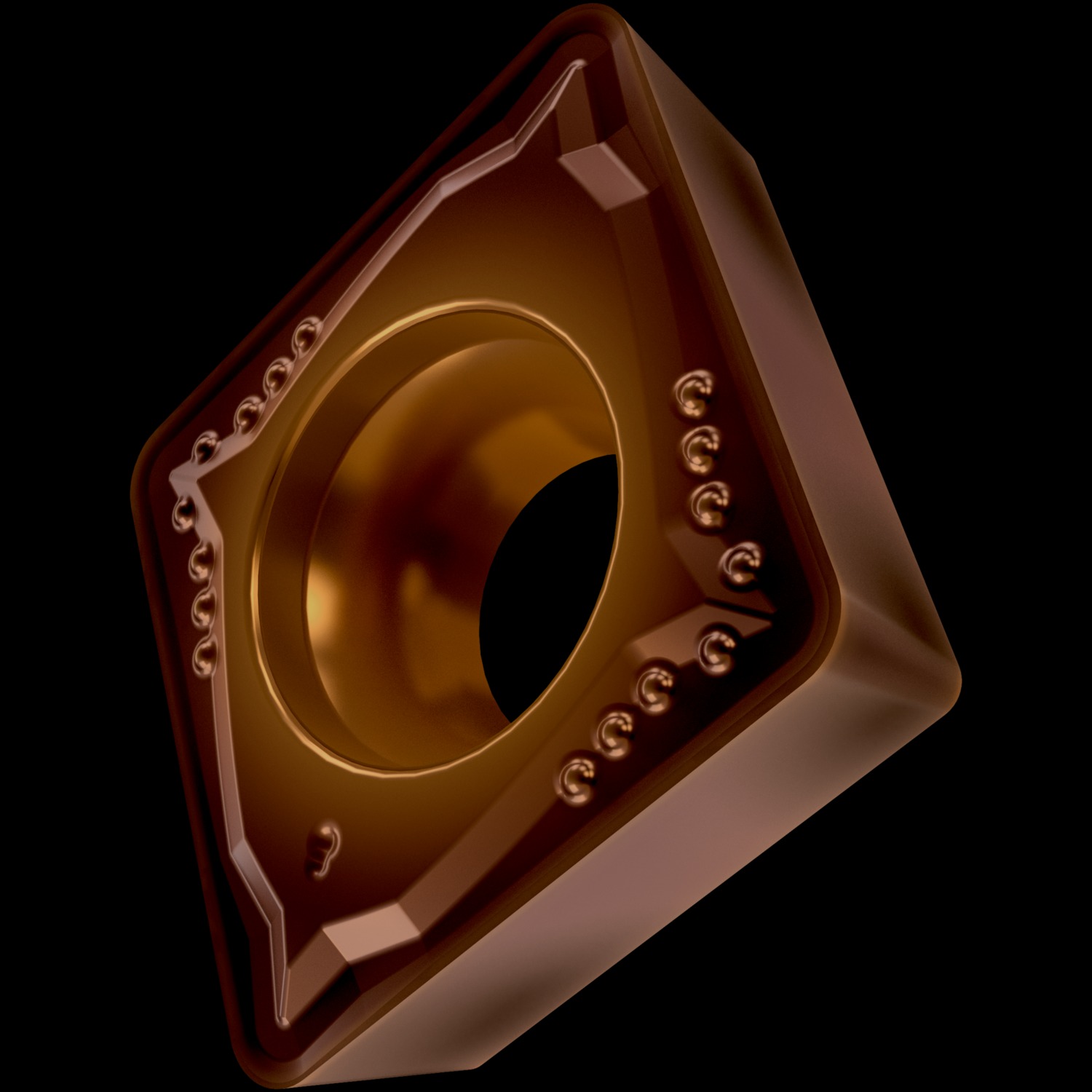 Single-sided positive turning insert, 80° rhomboid with 7° clearance, inscribed circle diameter of 12.7mm, 4.76mm thick, 1.2mm nose radius, indexing accuracy according to ISO-tolerance class-M, chip-breaker FM with rounded cutting edges, in grade T8430, a PVD coated fine grained WC-Co carbide within ISO ranges P20 -P40 and M20 -M35, for fine to medium machining of steels and stainless-steels