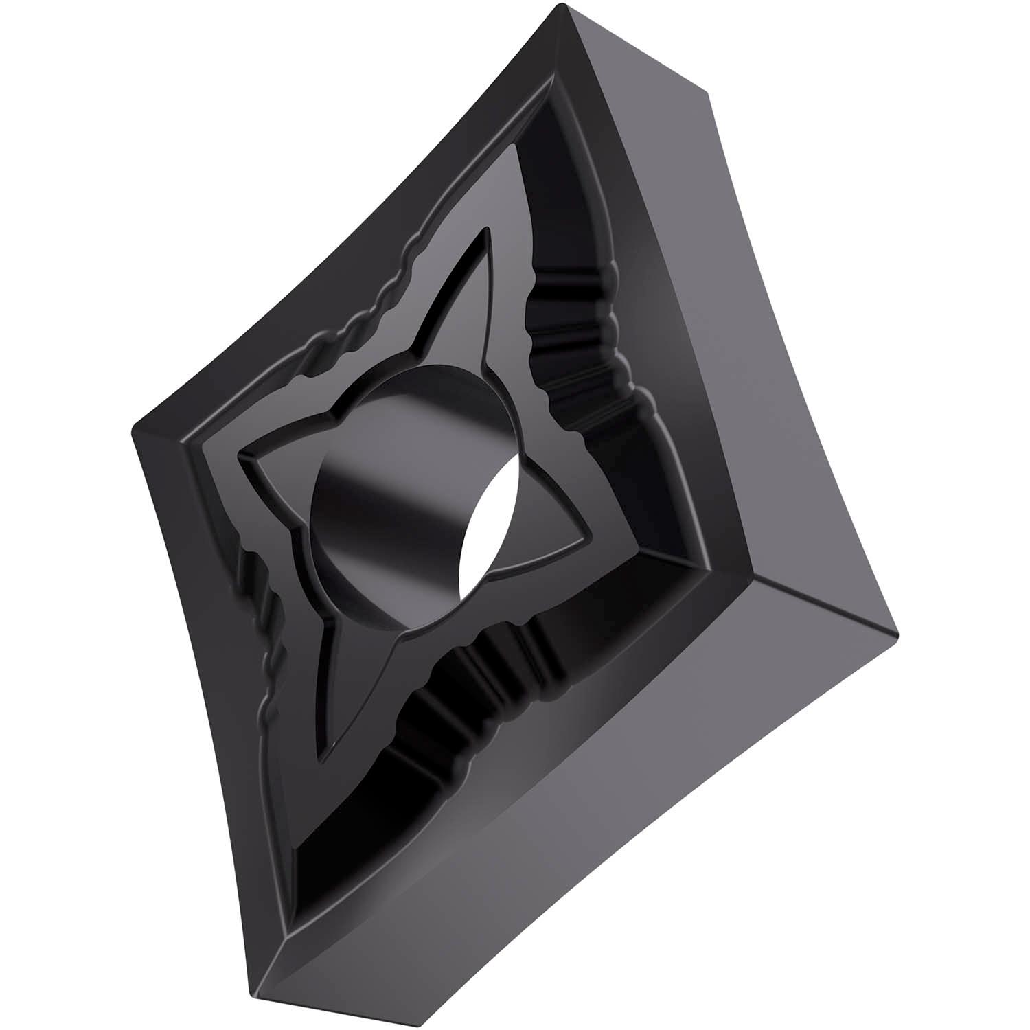 Double-sided negative turning insert, 80° rhomboid with inscribed circle diameter of 12.7mm, 4.76mm thick, 0.2mm nose radius, indexing accuracy according to ISO-tolerance class-G, chip-breaker SF with rounded cutting edges, in grade T6310, a PVD coated extra fine grained WC-Co carbide within ISO ranges P01 -P15/M01 -M15/K05 -K20/S01 -S15 and H01 -H15, for fine to medium machining of steels, stainless-steels, cast-irons, super-alloys and hardened materials