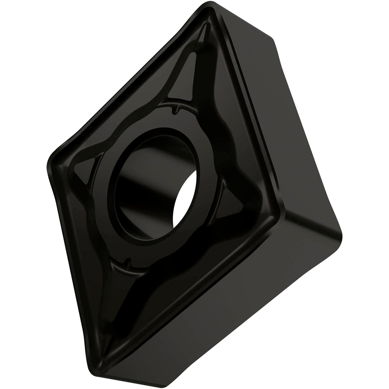Double-sided negative turning insert, 80° rhomboid with inscribed circle diameter of 12.7mm, 4.76mm thick, 1.2mm nose radius and indexing accuracy according to ISO-tolerance class-M, chip-breaker NRM, in grade T7325, a MT-CVD coated functionally graded WC-Co carbide within ISO ranges M10 -M25 and S10 -S25, for medium to heavy machining of stainless-steels and super-alloys