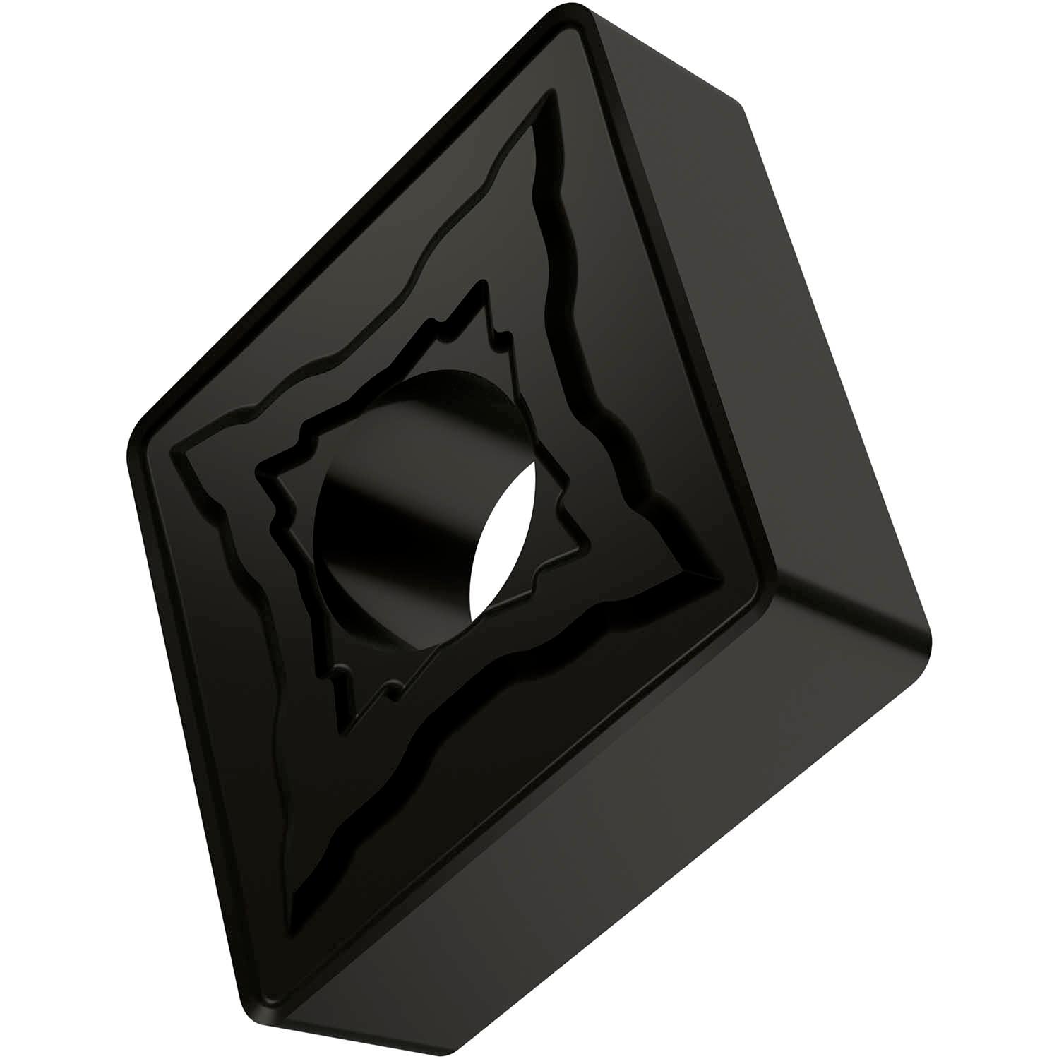 Double-sided negative turning insert, 80° rhomboid with inscribed circle diameter of 12.7mm, 4.76mm thick, 1.2mm nose radius, indexing accuracy according to ISO-tolerance class-M, chip-breaker NMR with rounded cutting edges, in grade T9325, a MT-CVD coated functionally graded WC-Co carbide within ISO ranges P15 -P35 and M10 -M30, for fine to heavy machining of steels and stainless-steels