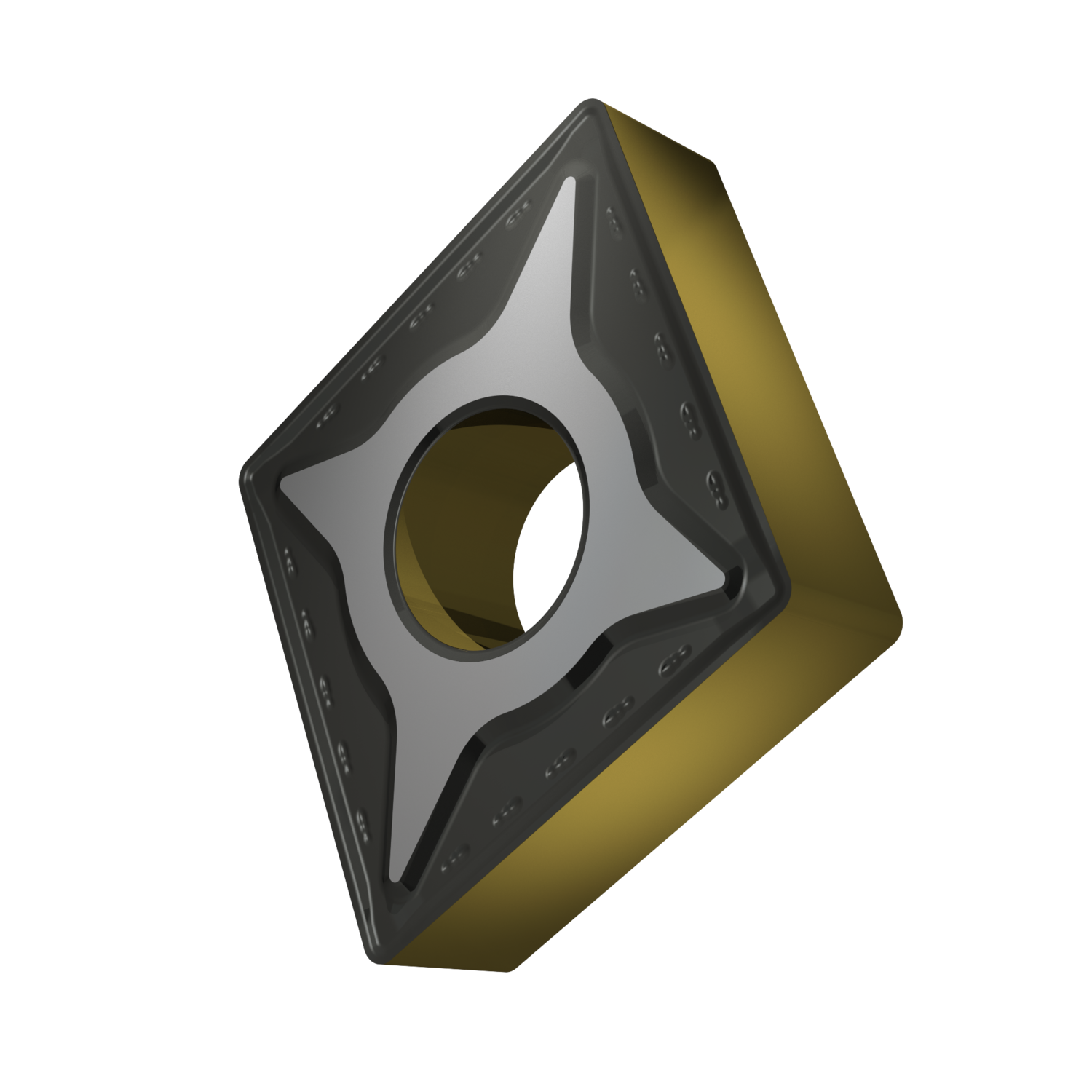 Double-sided negative turning insert, 80° rhomboid with inscribed circle diameter of 19.05mm, 6.35mm thick, 0.8mm nose radius, indexing accuracy according to ISO-tolerance class-M, chip-breaker RM with rounded cutting edges, in grade T9415, a MT-CVD coated functionally graded WC-Co carbide within ISO range P05 -P30, for medium to heavy machining of steels