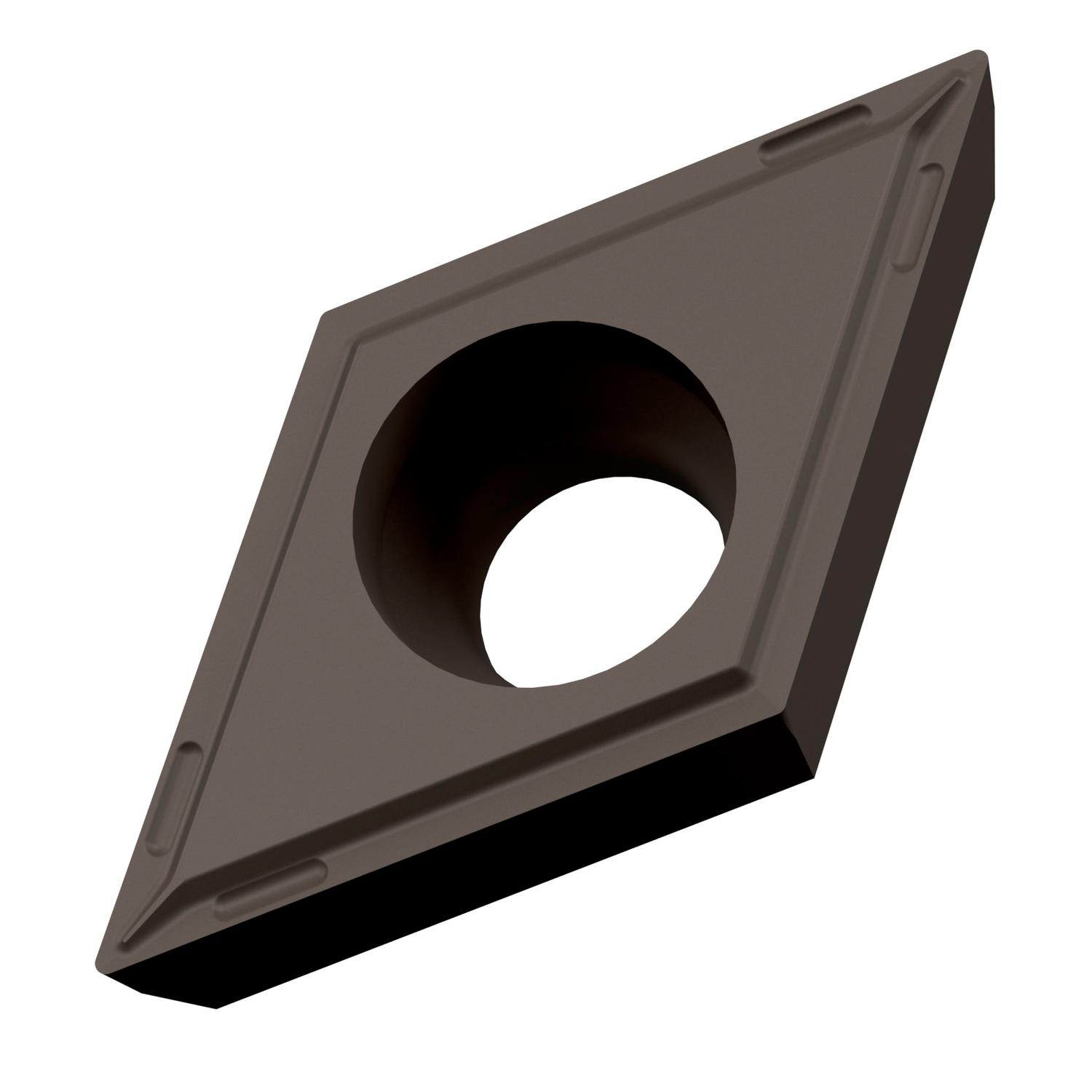 Single-sided positive turning insert, 55° rhomboid with 7° clearance, inscribed circle diameter of 9.525mm, 3.97mm thick, 0.2mm nose radius, indexing accuracy according to ISO-tolerance class-G, chip-breaker FF2 with rounded cutting edges, in grade T9325, a MT-CVD coated functionally graded WC-Co carbide within ISO range P15 -P35, for fine to medium machining of steels
