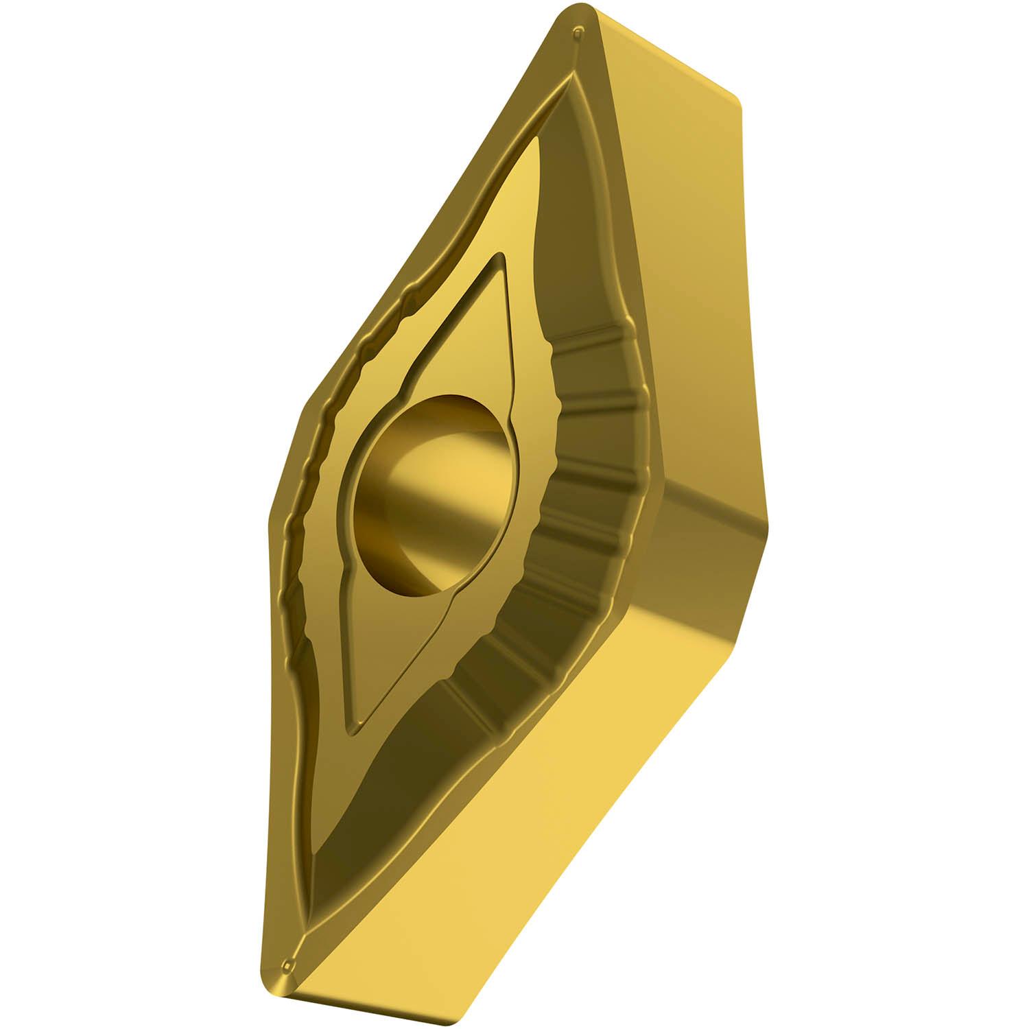 Double-sided negative turning insert, 55° rhomboid with inscribed circle diameter of 9.525mm, 4.76mm thick, 0.4mm nose radius, indexing accuracy according to ISO-tolerance class-M, chip-breaker SF with rounded cutting edges, in grade T8315, a PVD coated fine grained WC-Co carbide within ISO ranges M05 -M20/K05 -K25 and H05 -H15, for fine to medium machining of stainless-steels, cast-irons and hardened materials