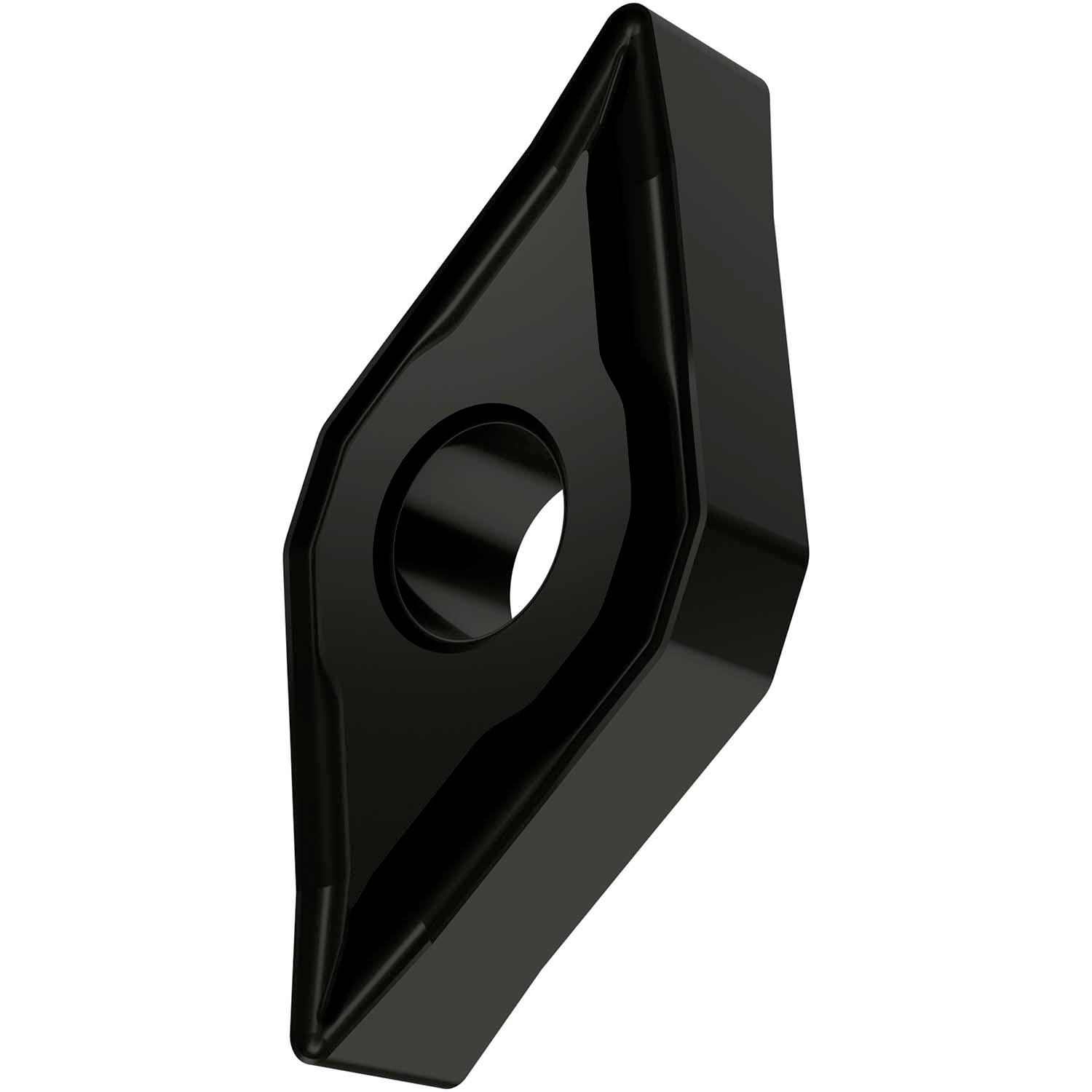 Double-sided negative turning insert, 55° rhomboid with inscribed circle diameter of 9.525mm, 4.76mm thick, 0.8mm nose radius, indexing accuracy according to ISO-tolerance class-M, chip-breaker NF with rounded cutting edges, in grade T7335, a MT-CVD coated functionally graded WC-Co carbide within ISO range M20 -M40, for fine to medium machining of stainless-steels