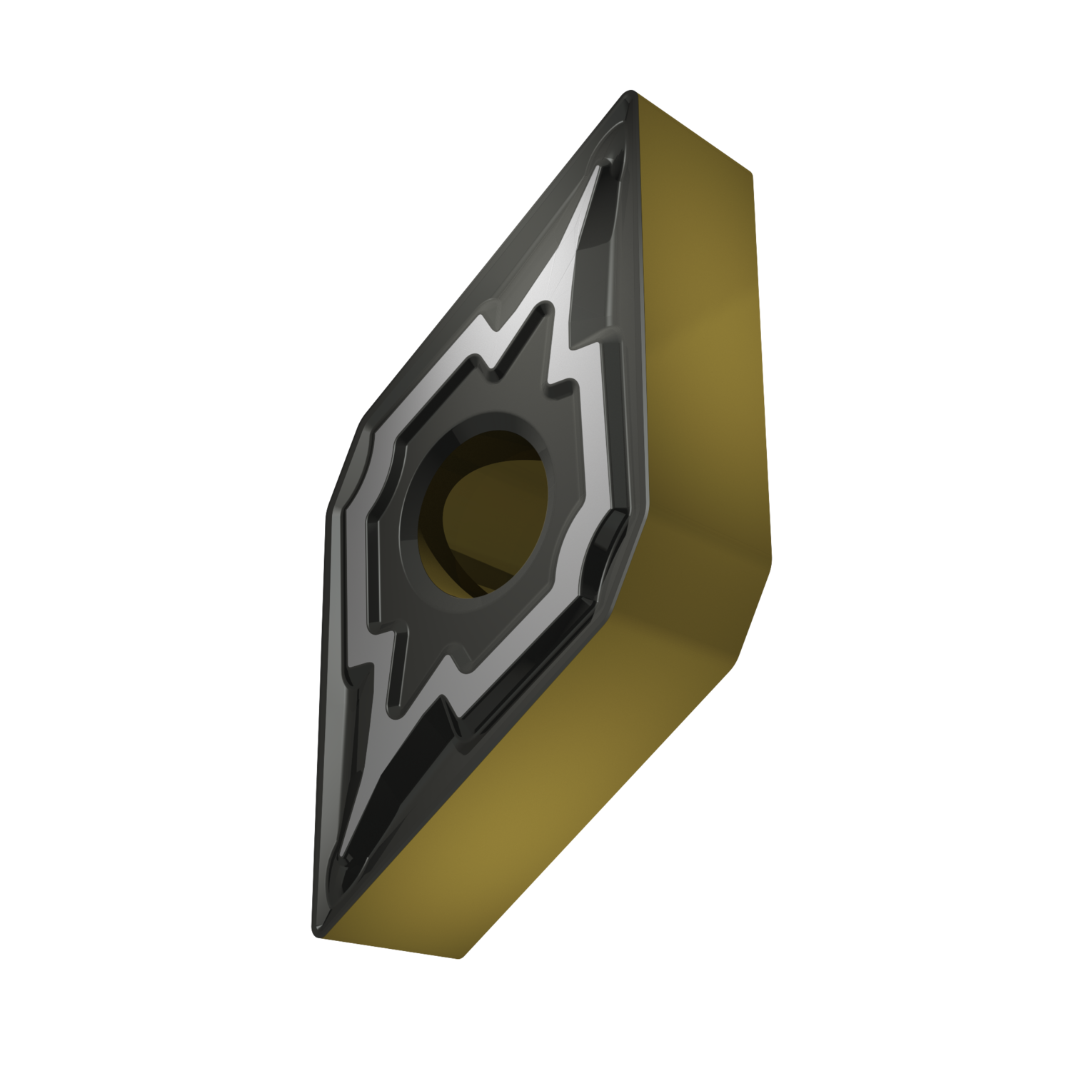 Double-sided negative turning insert, 55° rhomboid with inscribed circle diameter of 12.7mm, 6.35mm thick, 0.4mm nose radius, indexing accuracy according to ISO-tolerance class-M, chip-breaker M with rounded cutting edges, in grade T9415, a MT-CVD coated functionally graded WC-Co carbide within ISO range P05 -P30, for fine to heavy machining of steels