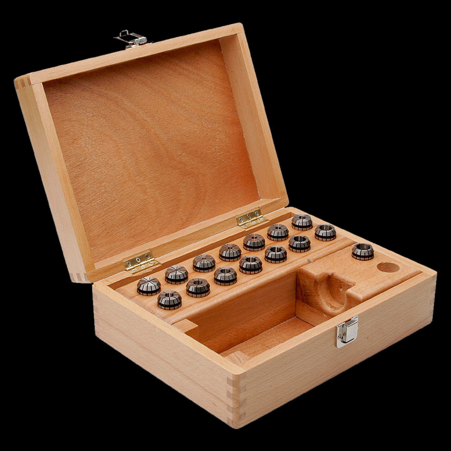 ER Sealed Collets With 4 Coolant Channels And Tap Square Drive – Set in Wooden Box