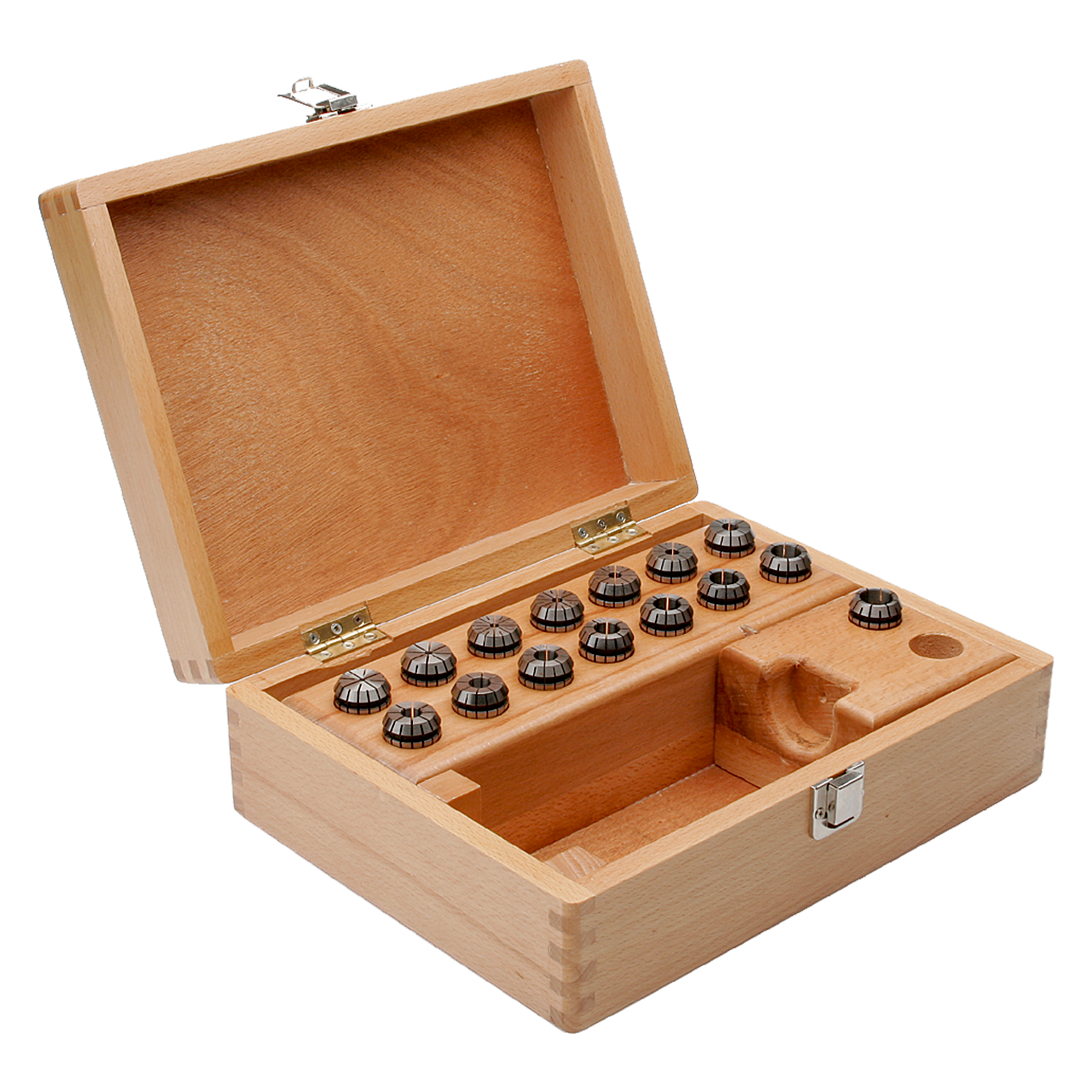 ER Sealed Collets With 4 Coolant Channels for Cylindrical Shanks – Set in Wooden Box