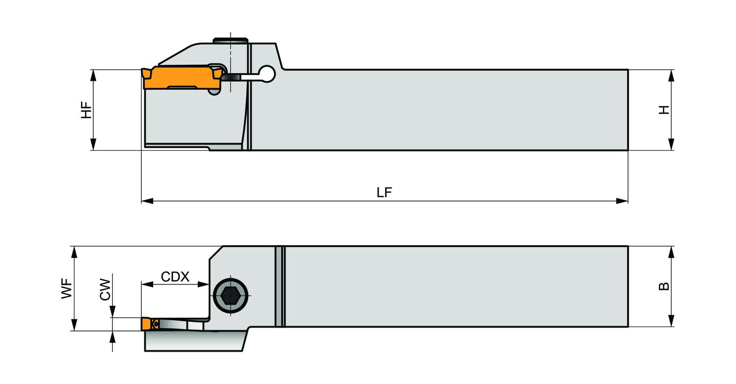 GL3-S2020KFR-12-L035027 is right handed axial face grooving tool for GL inserts. Suited for face grooving, turning and profiling applications. Body treated for longer tool life