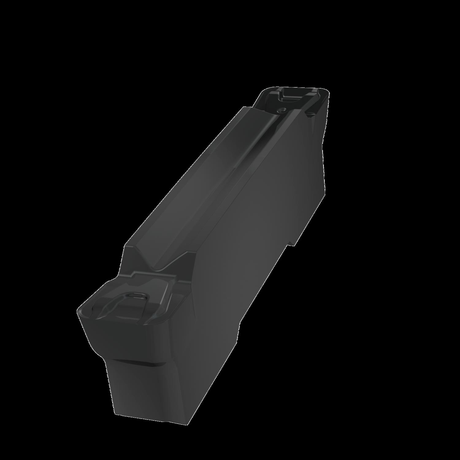 Double ended parting and grooving insert, 25 mm long with a 4mm cutting width and 0.8mm corner radii, a cutting width tolerance of ±0.05. Grade T7325 MT-CVD coated functionally graded WC-Co carbide within ISO-grade ranges M10-M25 and K15-K25 for machining of stainless-steel and cast-iron. GM versatile geometry for grooving and longitudinal turning, and continuous to interrupted cuts