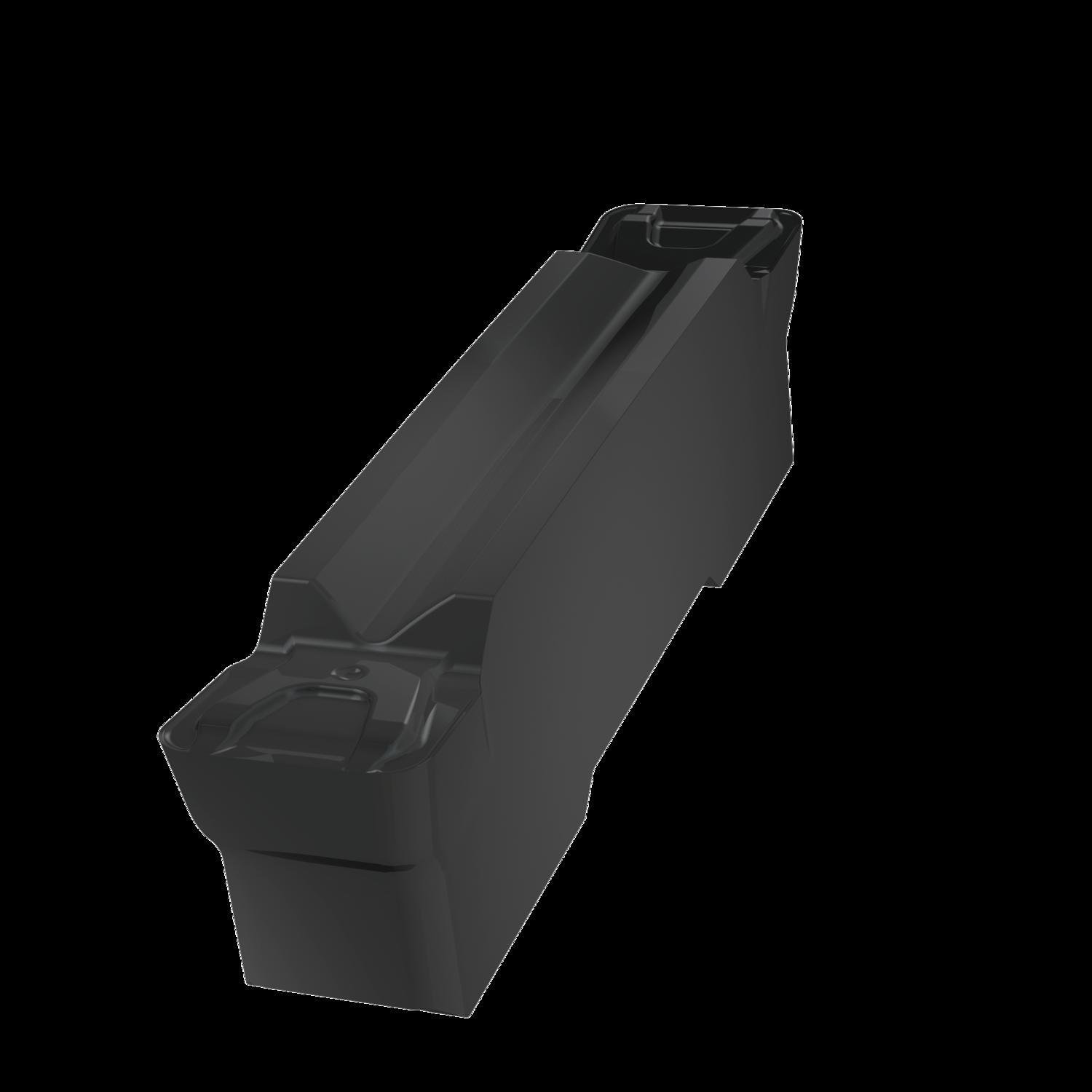 Double ended parting and grooving insert, 25 mm long with a 5mm cutting width and 0.8mm corner radii, a cutting width tolerance of ±0.05. Grade T7325 MT-CVD coated functionally graded WC-Co carbide within ISO-grade ranges M10-M25 and K15-K25 for machining of stainless-steel and cast-iron. GM versatile geometry for grooving and longitudinal turning, and continuous to interrupted cuts