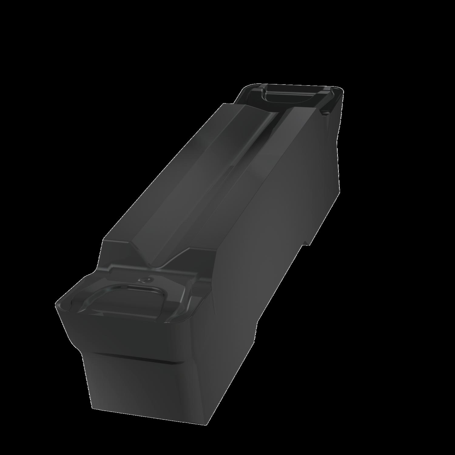 Double ended parting and grooving insert, 25 mm long with a 6mm cutting width and 0.8mm corner radii, a cutting width tolerance of ±0.05. Grade T7325 MT-CVD coated functionally graded WC-Co carbide within ISO-grade ranges M10-M25 and K15-K25 for machining of stainless-steel and cast-iron. GM versatile geometry for grooving and longitudinal turning, and continuous to interrupted cuts
