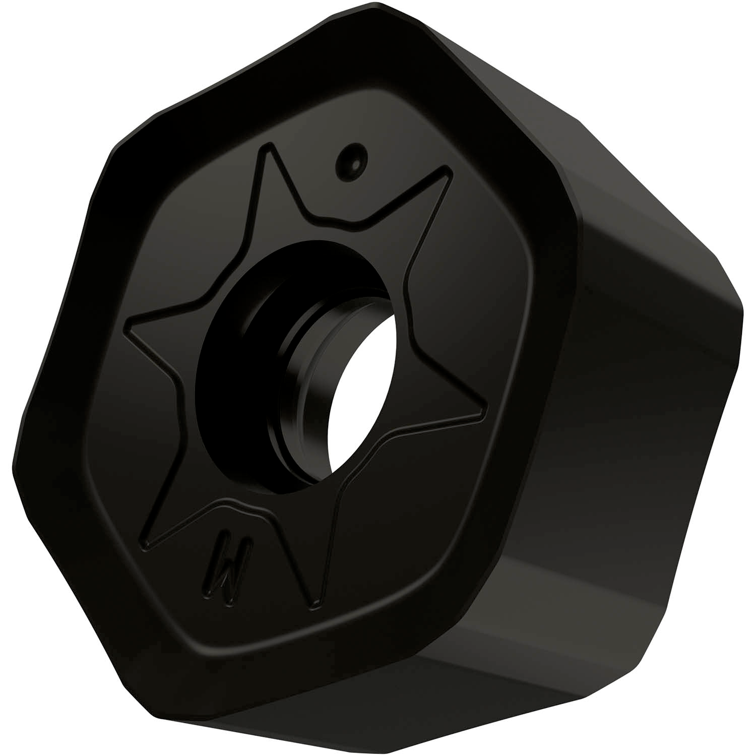 Double-sided milling insert HNGX 0906, hectagonal for a maximum depth of cut of 5.0mm, with an indexing accuracy according to ISO-tolerance class-G and M geometry with rounded cutting edges and facet, M9340 MT-CVD coated WC-Co carbide within ISO-grade range P35 -P50 for machining of steel with face mills SHN09C