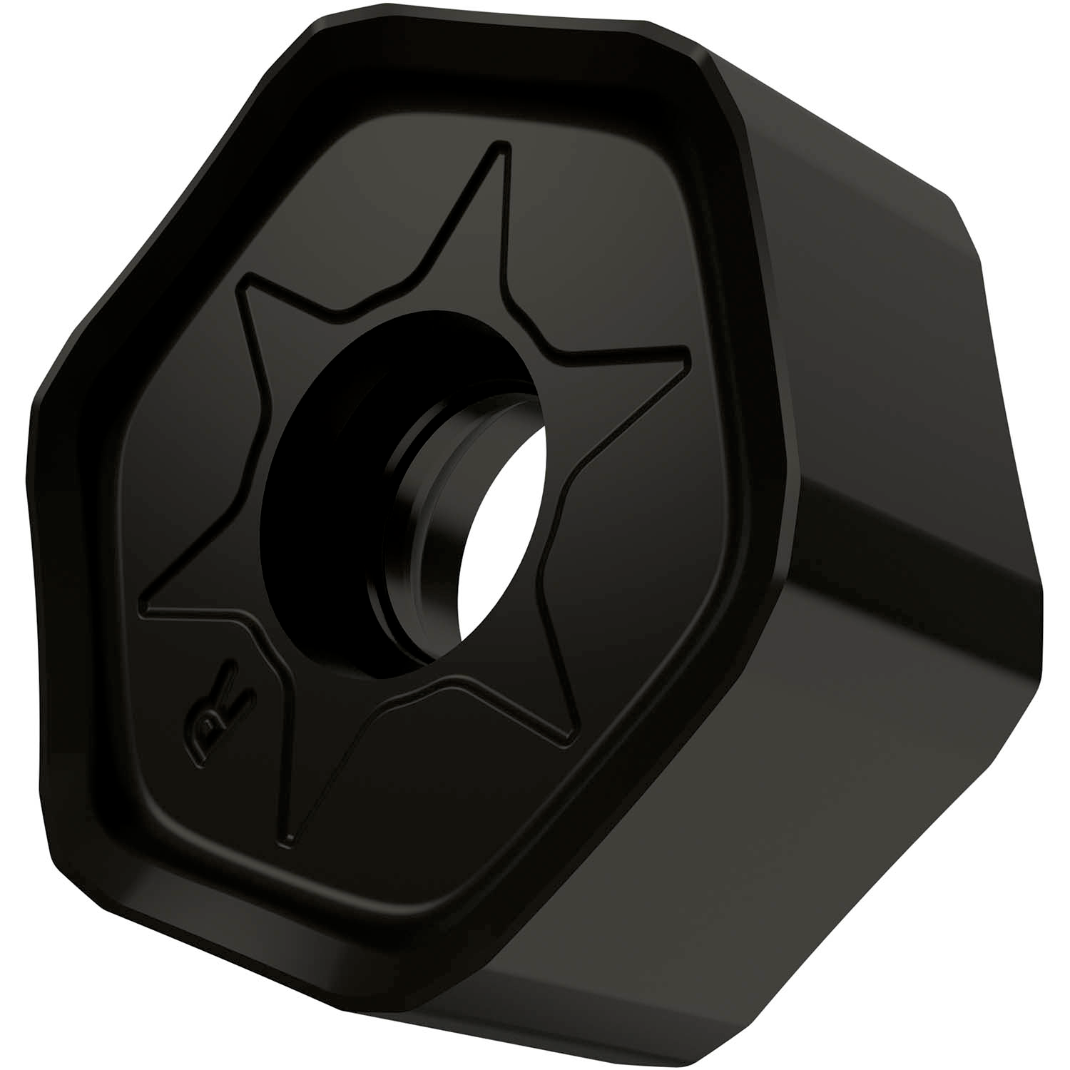 Double-sided milling insert HNGX 0906, hectagonal for a maximum depth of cut of 5.0mm, with an indexing accuracy according to ISO-tolerance class-G and R geometry with rounded cutting edges and facet, M5315 MT-CVD coated WC-Co carbide within ISO-grade range K05 -K25 for machining of cast-iron with face mills SHN09C